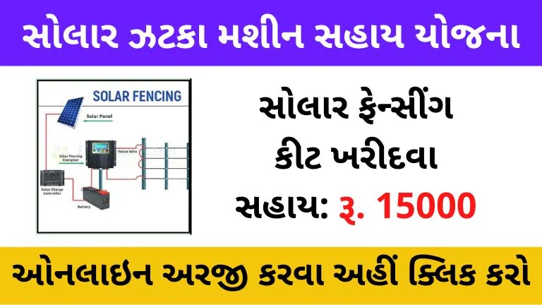 આજે આપણે ઝટકા મશીન યોજના એટલે કે સોલાર ફેન્સીંગ પાવર કીટ વિશે માહિતી મેળવીશું આ યોજના અંતર્ગત તમારે કઈ રીતે અરજી કરવી તે અંગેની સંપૂર્ણ વિગત મેળવવા નીચેની વિગતો ધ્યાનથી વાંચજો.